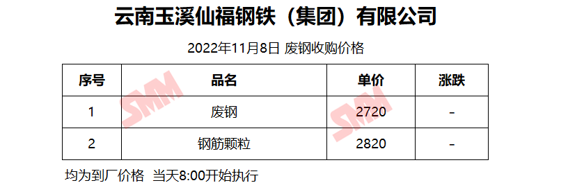 11月8日仙福钢铁 废钢收购报价