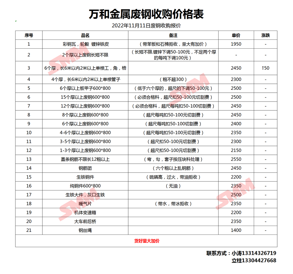 11月11日 万和金属 废钢采购报价