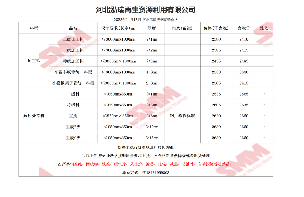 今日 河北泓瑞再生资源利用有限公司 废钢采购报价已更新,有货的朋友欢迎联系我们!