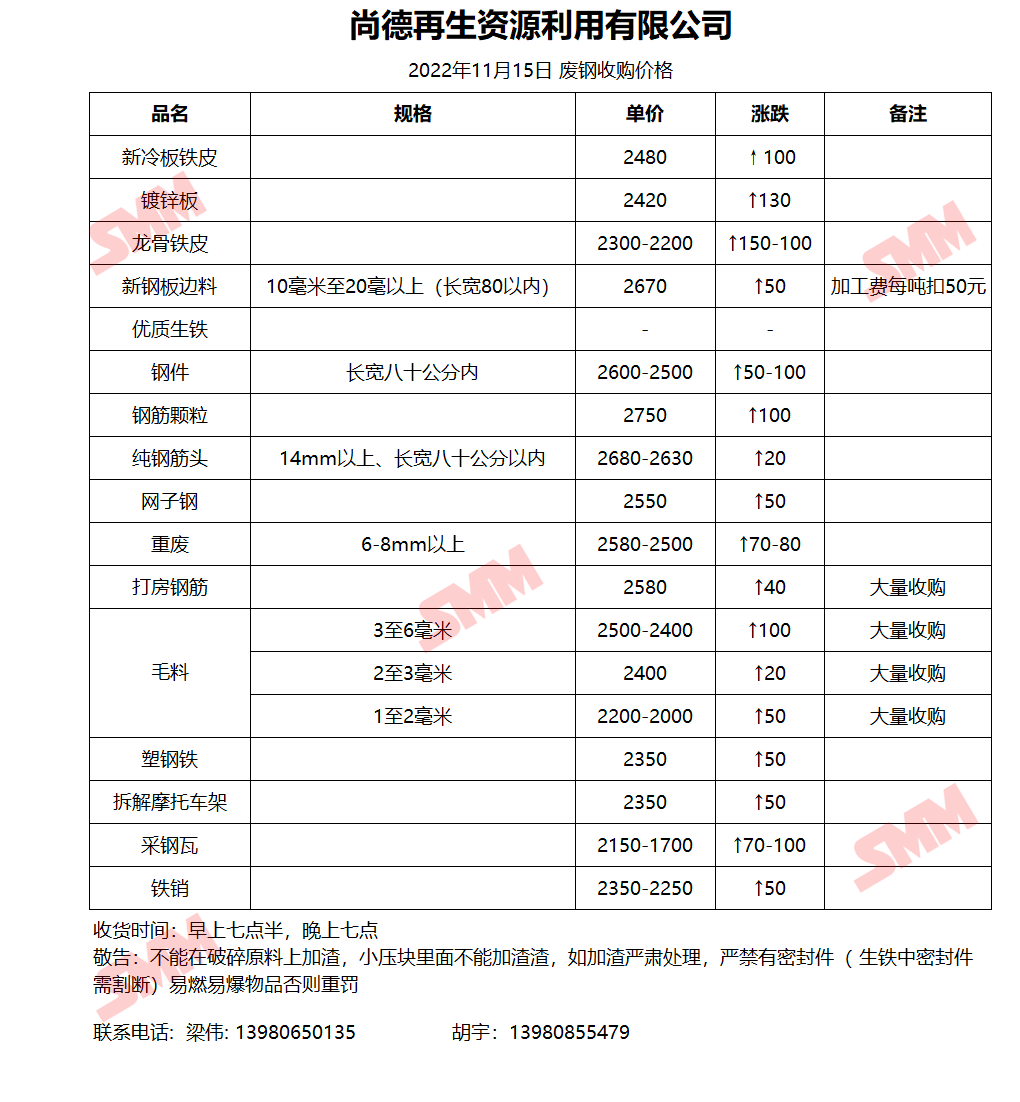 今日 尚德再生资源 废钢收购价格已更新,有货的朋友欢迎联系我们!