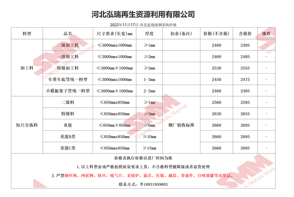 今日 河北泓瑞再生资源利用有限公司 废钢采购报价已更新,有货的朋友欢迎联系我们!