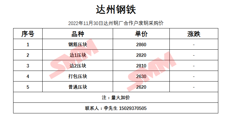 11月30日 达州钢铁 废钢收购报价