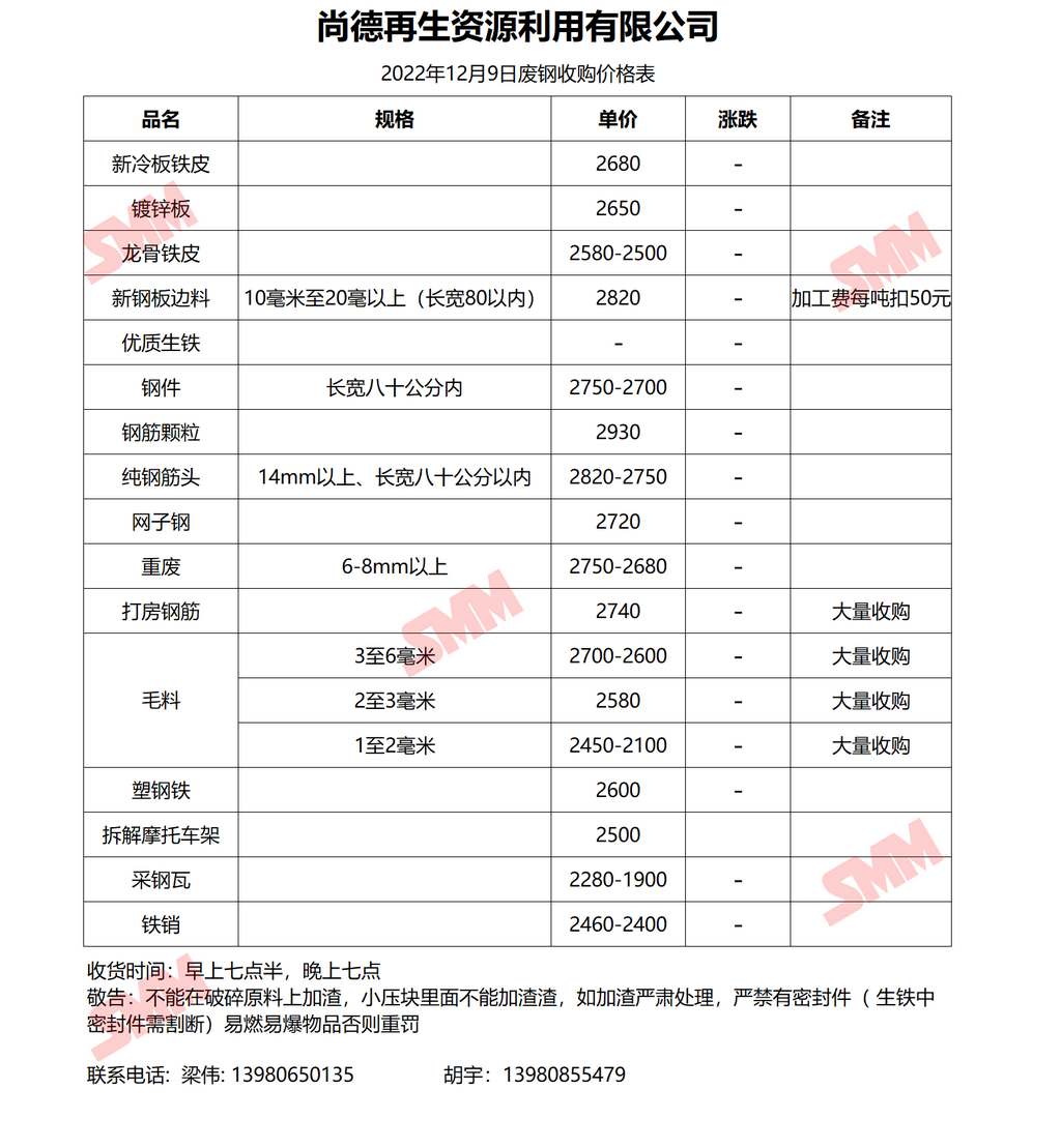 12月9日 尚德再生资源 废钢收购报价