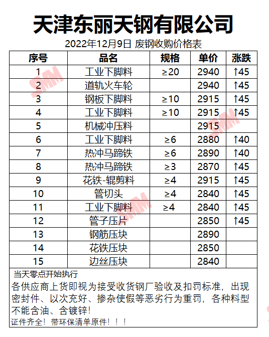 12月23日河北金瑞隆钢铁 废钢收购报价