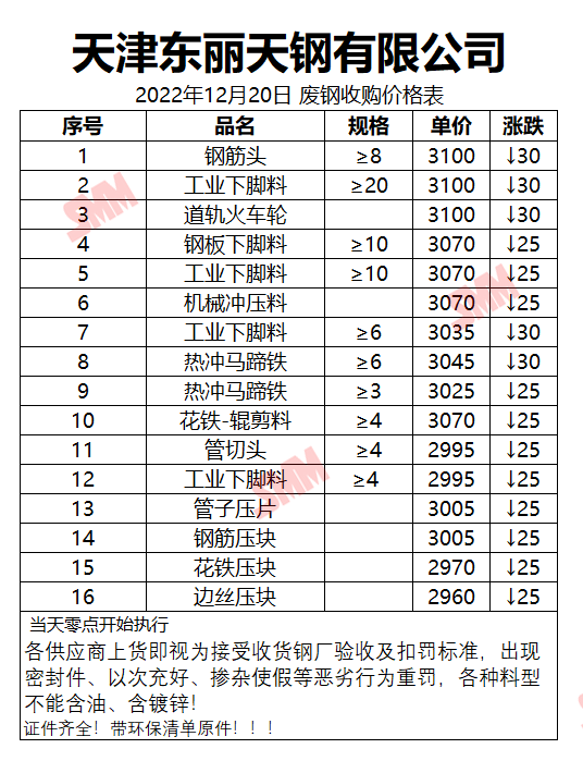 12月19日河北纵横集团丰南钢铁 废钢采购报价