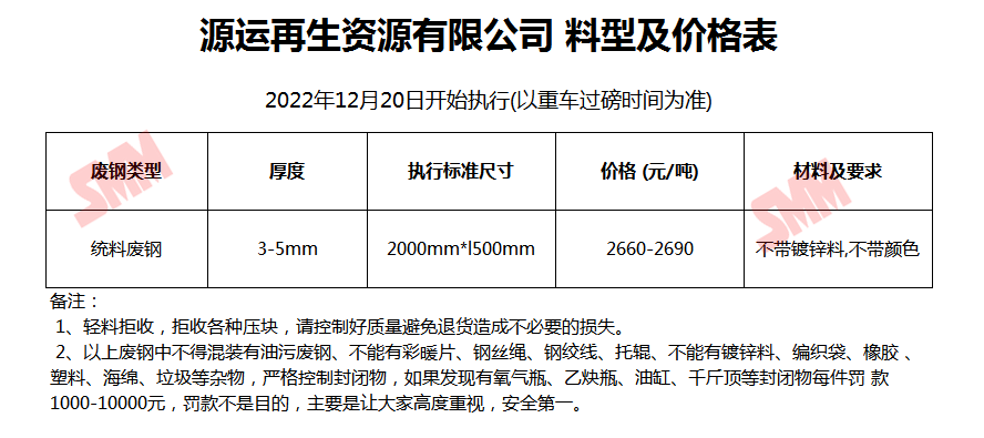 12月20日源运再生资源 废钢收购报价