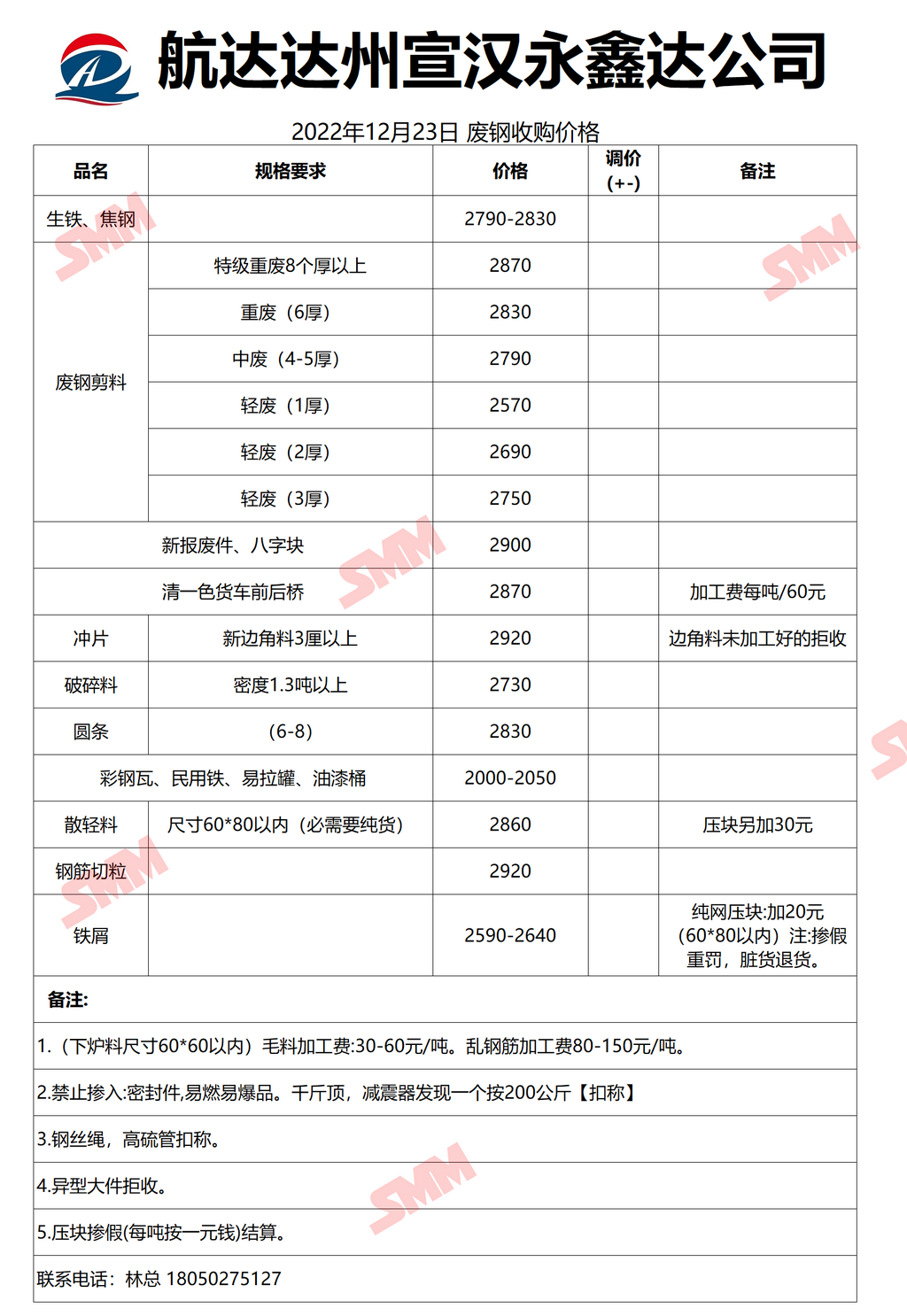今日达州宣汉永鑫达 废钢收购报价已更新,有货的朋友欢迎联系我们!