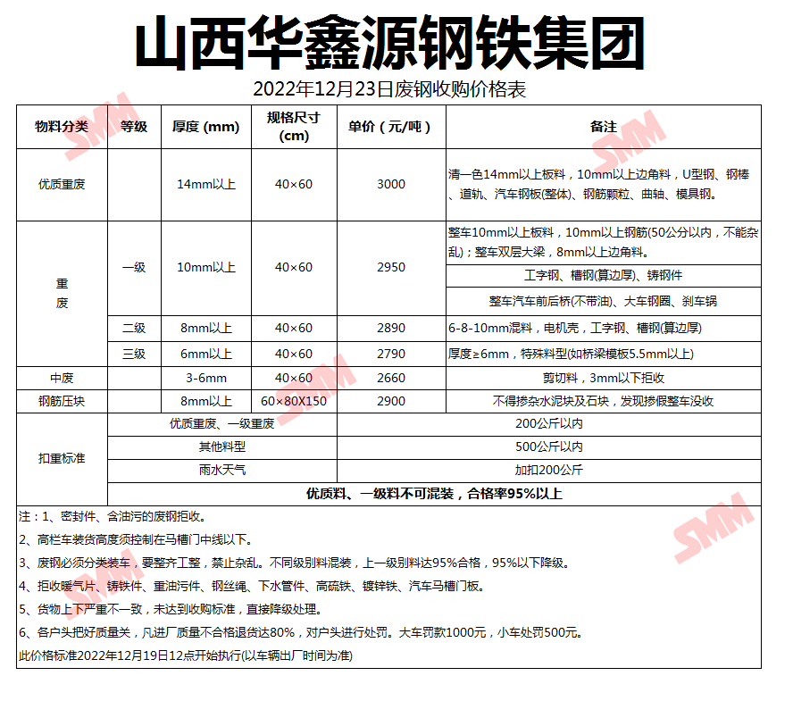 12月23日山西华鑫源钢铁 废钢收购报价