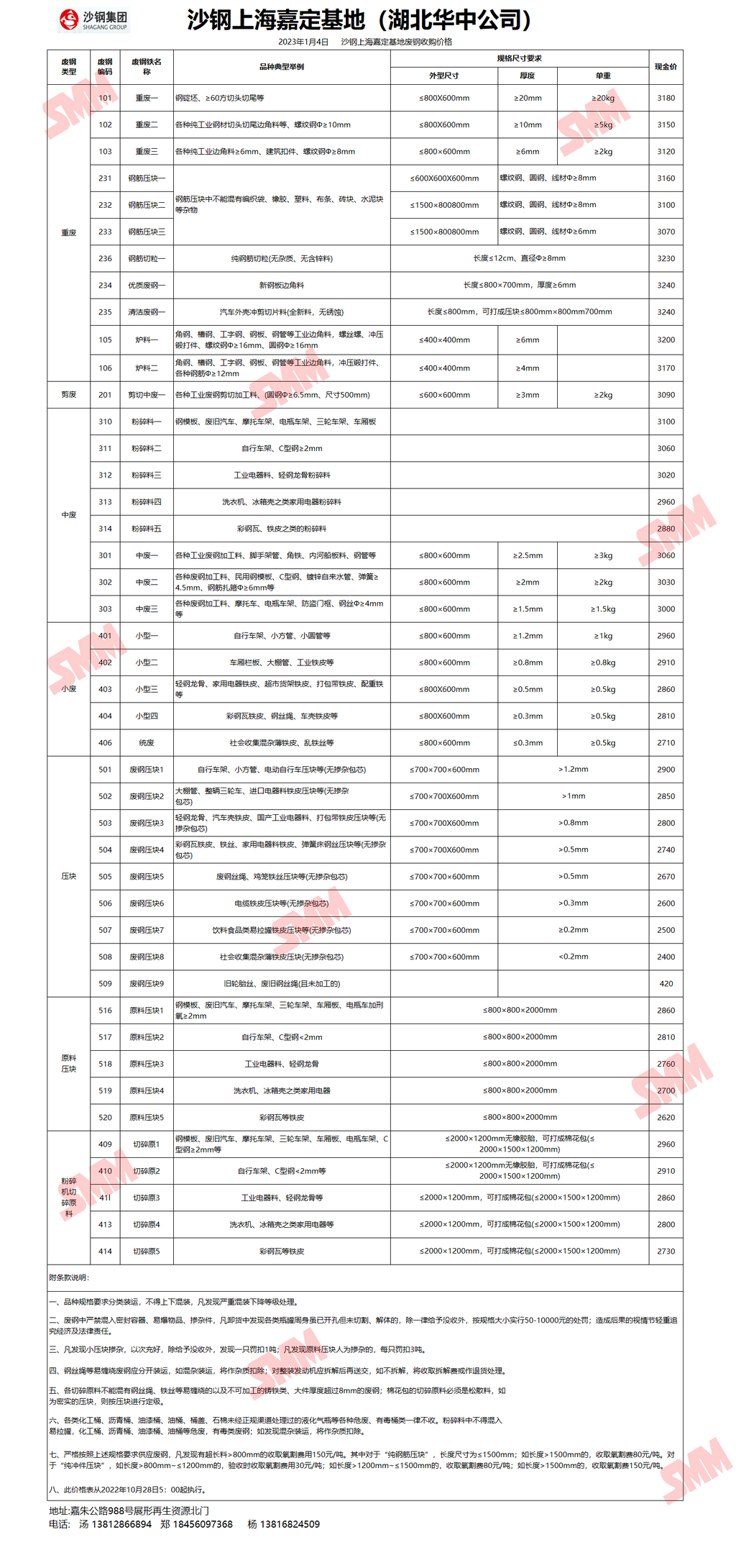 1月4日沙钢上海嘉定基地 废钢收购报价