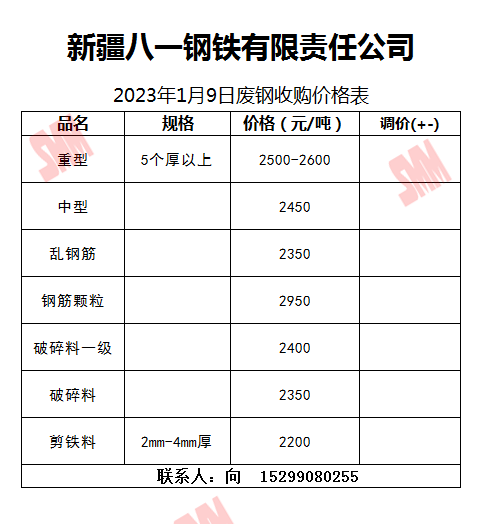 1月9日新疆八一钢铁 废钢收购报价