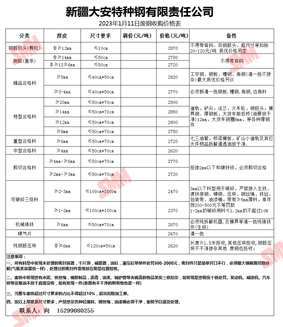 今日新疆大安钢铁 废钢收购报价已更新,有货的朋友欢迎联系我们!