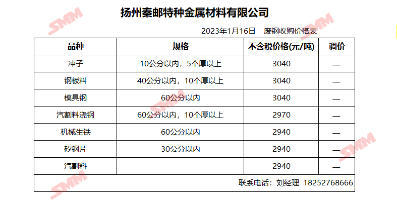 今日秦邮特钢 废钢采购报价已更新,有货的朋友欢迎联系我们!