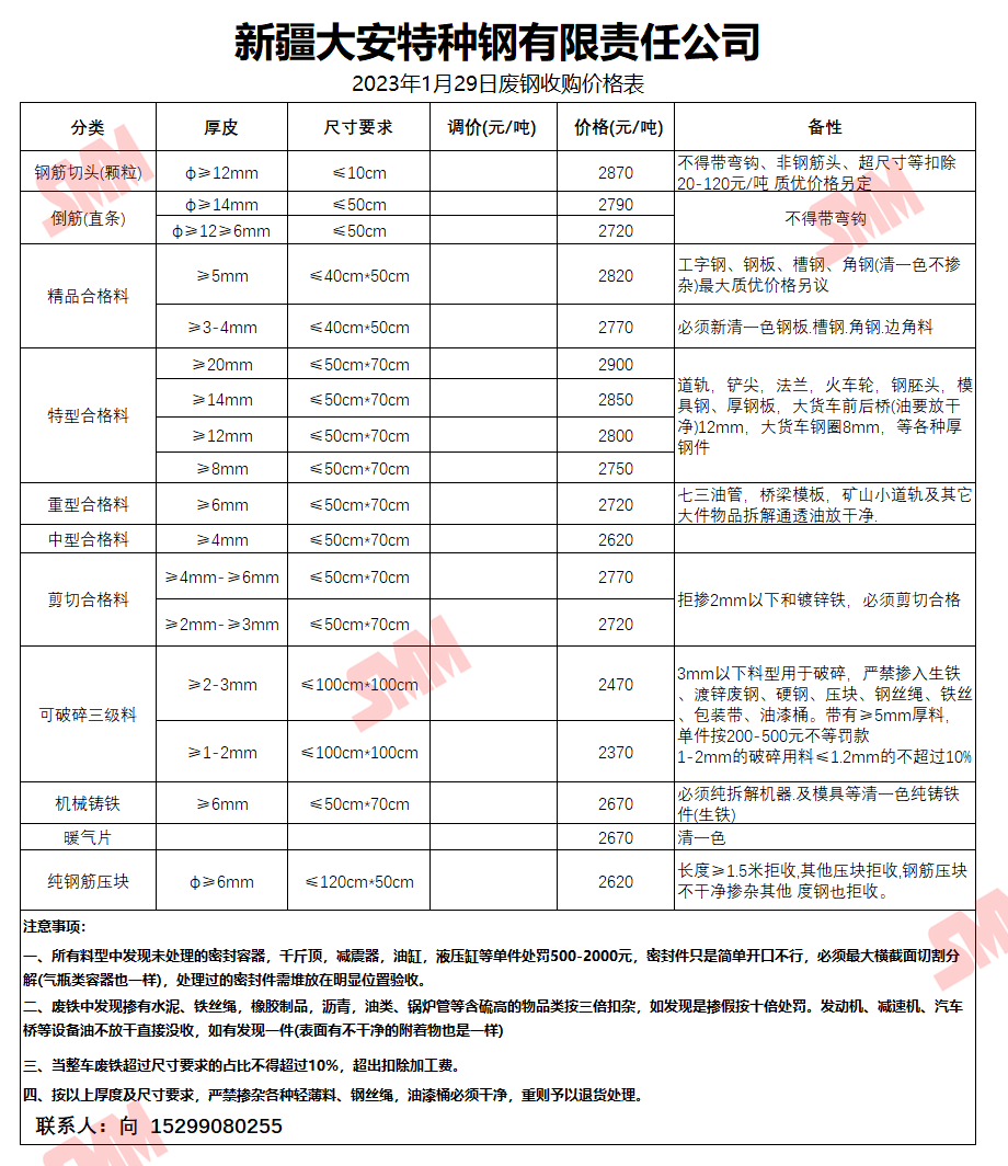1月29日新疆大安钢铁 废钢收购报价