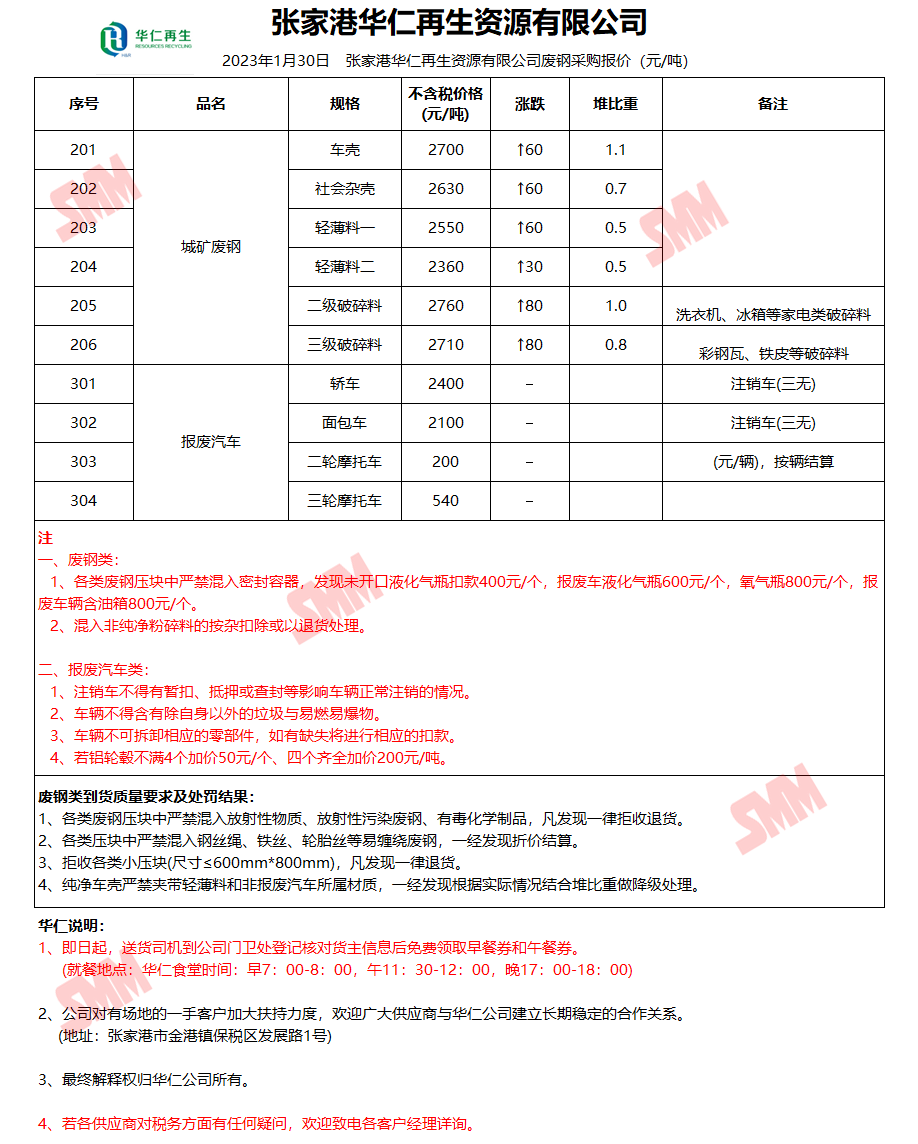 今日 张家港华仁再生资源利用有限公司 废钢采购报价已更新,有货的朋友欢迎联系我们!
