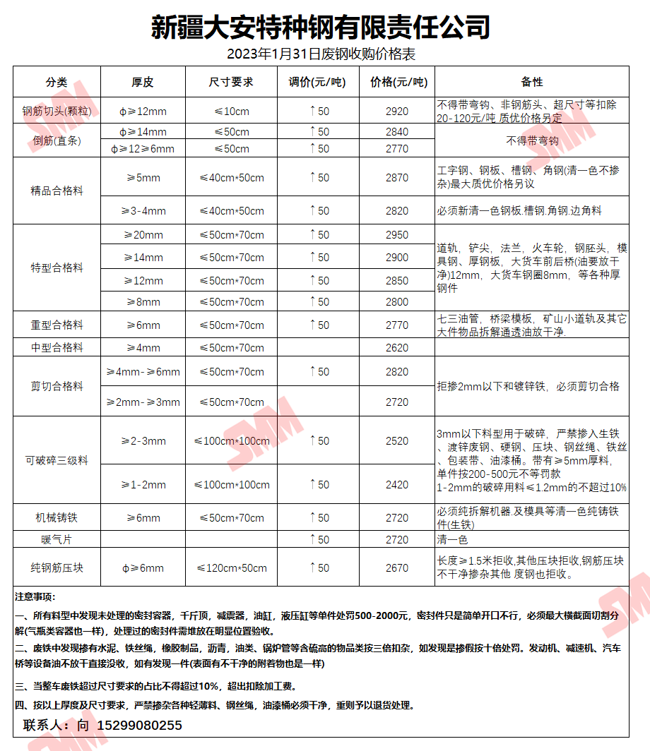 今日新疆大安钢铁 废钢收购报价已更新,有货的朋友欢迎联系我们!