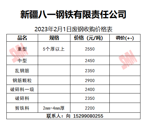 2月1日新疆八一钢铁 废钢收购报价