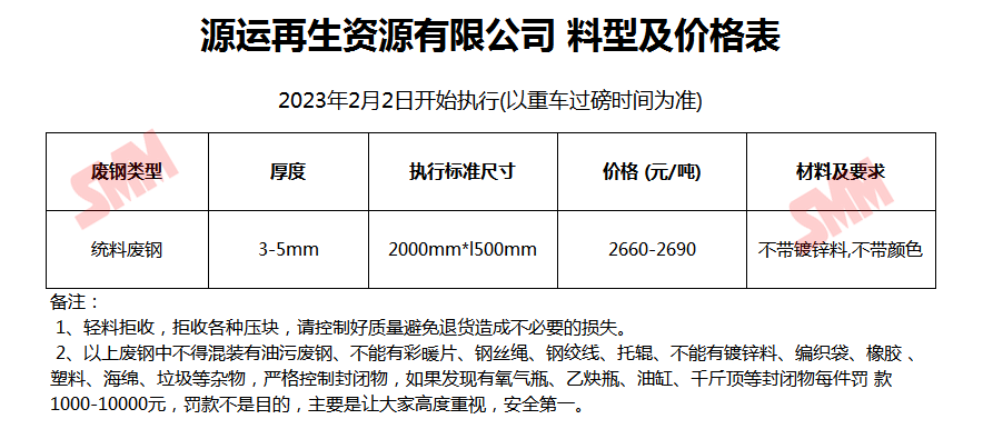 2月2日源运再生资源 废钢收购报价