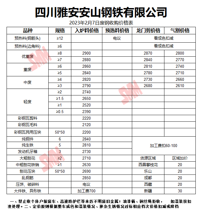 4月7日鑫泉钢铁(原绵竹金泉钢铁) 废钢采购报价