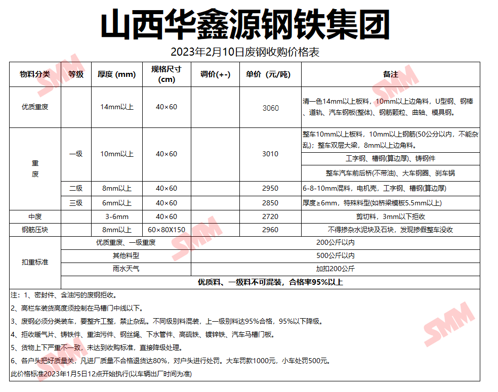 2月10日山西华鑫源钢铁 废钢收购报价