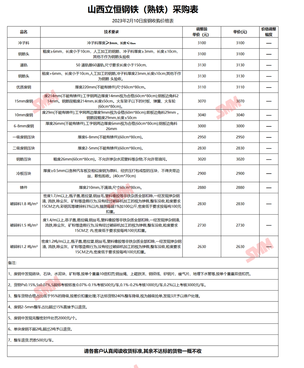2月10日山西立恒钢铁 废钢收购报价