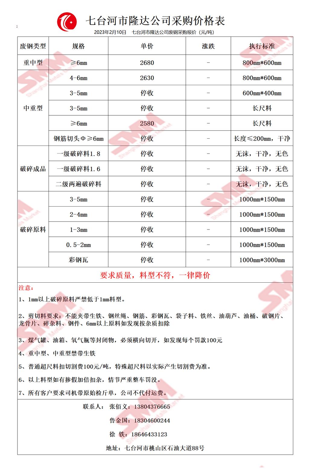 今日 七台河市隆达公司 废钢采购报价已更新,有货的朋友欢迎联系我们!