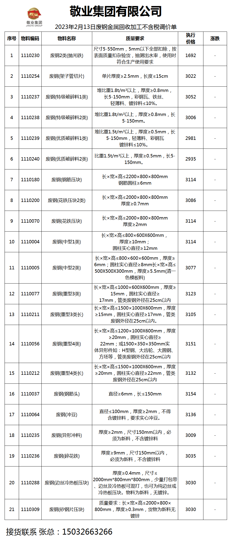今日敬业钢铁本部 废钢采购报价已更新,有货的朋友欢迎联系我们!