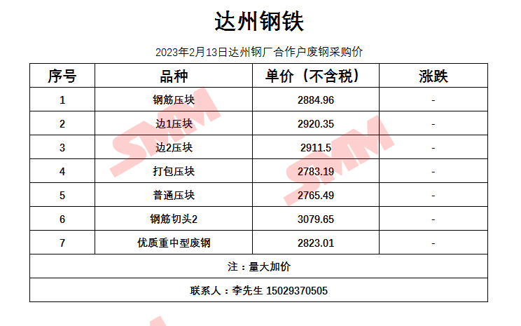 2月13日达州钢铁 废钢采购报价
