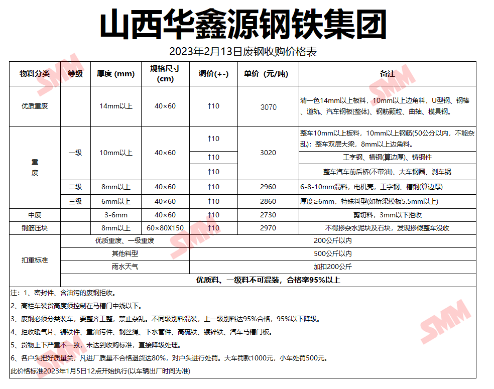 2月13日山西华鑫源钢铁 废钢收购报价