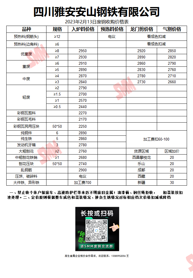 2月13日雅安安山钢铁 废钢收购报价