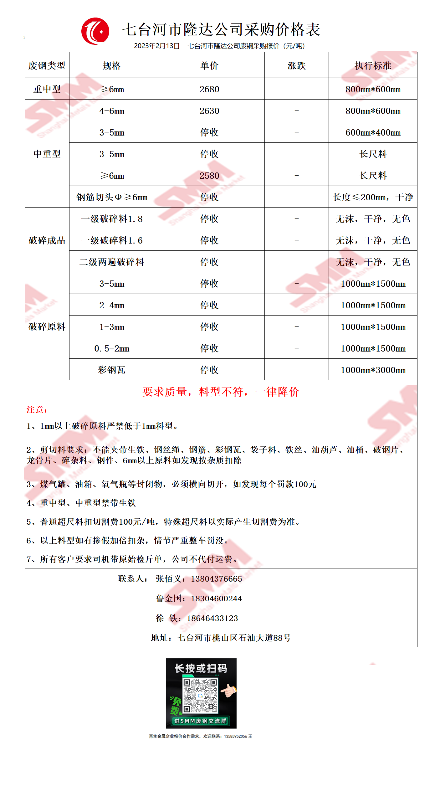 2月13日七台河市隆达 废钢采购报价
