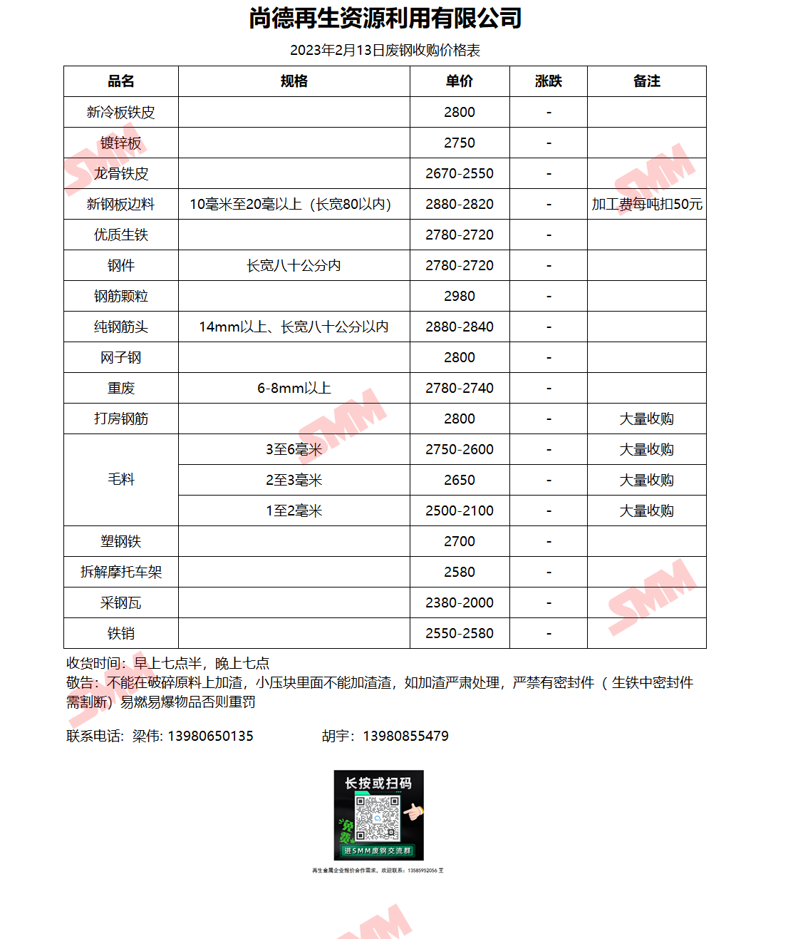 2月13日 尚德再生资源 废钢收购报价