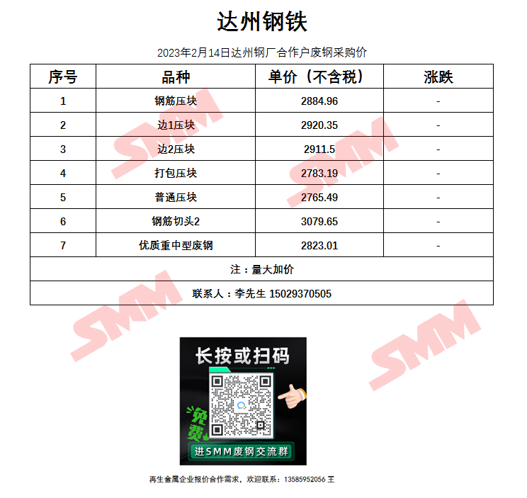 2月14日达州钢铁 废钢采购报价