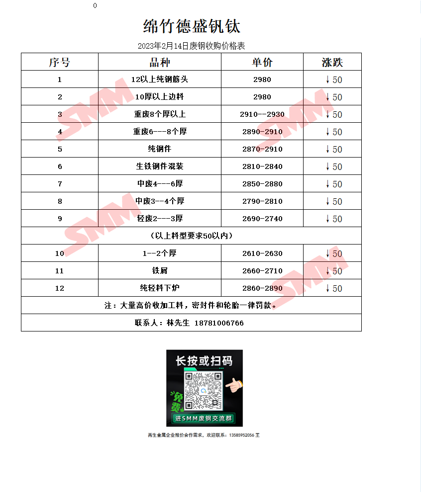 今日绵竹德盛钒钛 废钢收购报价已更新,有货的朋友欢迎联系我们!