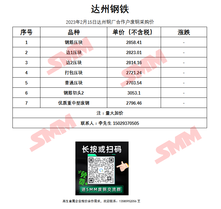 2月15日达州钢铁 废钢采购报价