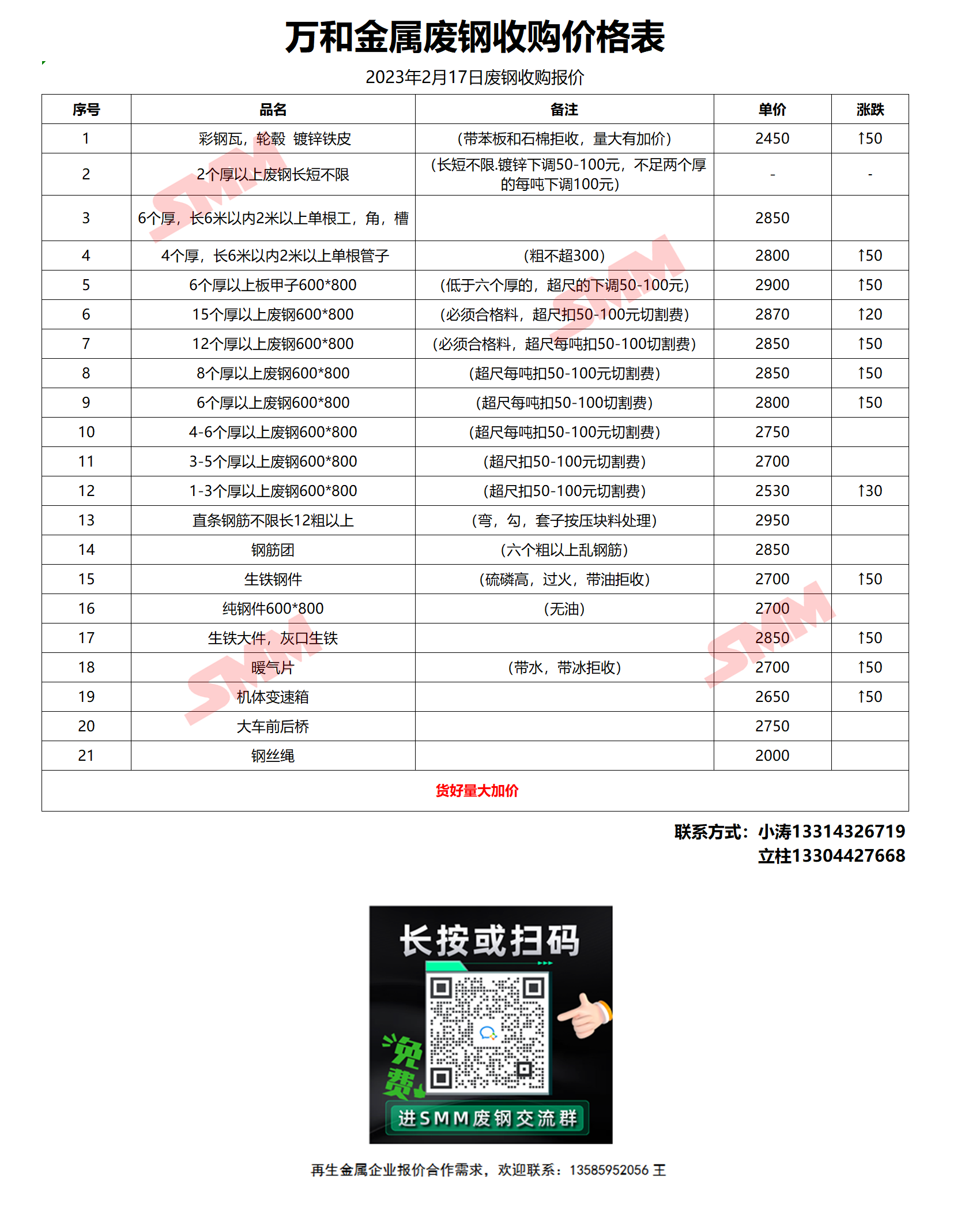 2月17日万和金属 废钢收购报价