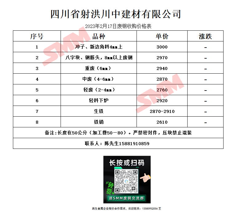2月17日 四川射洪川中 废钢收购报价