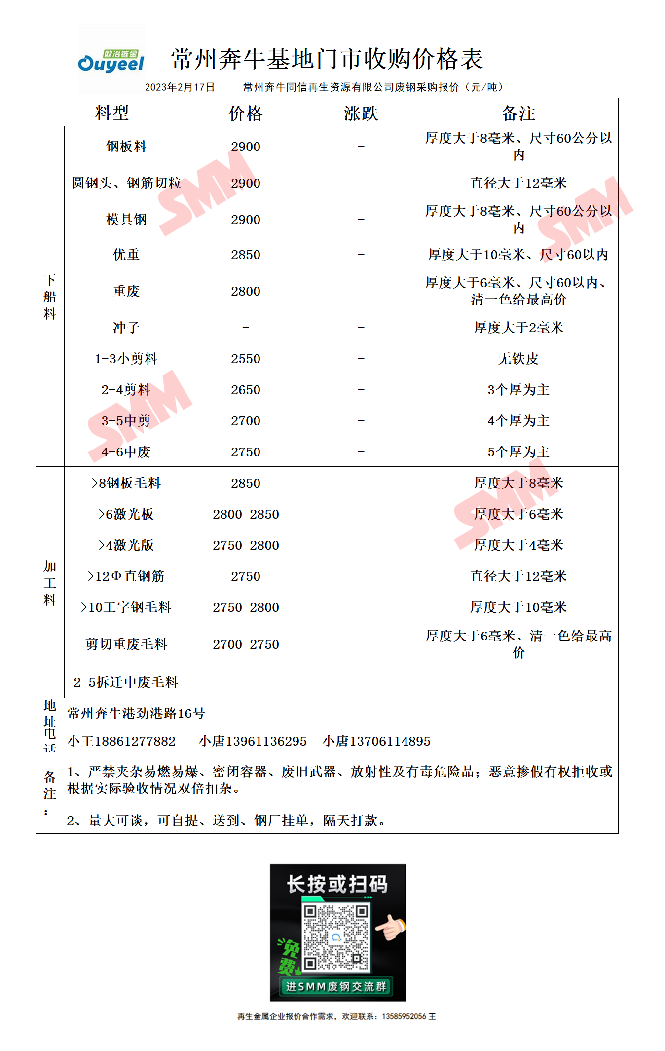 2月17日常州奔牛基地 废钢采购报价