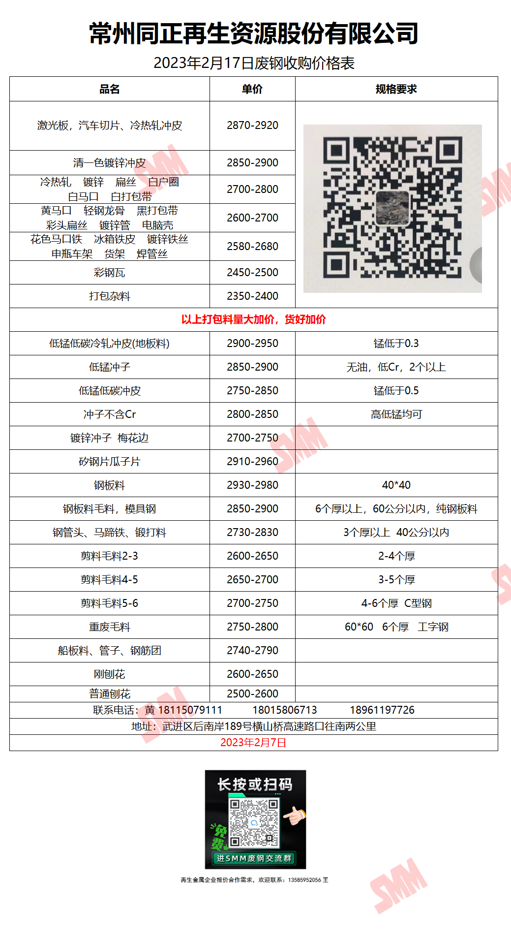 2月17日常州同正再生 废钢收购报价