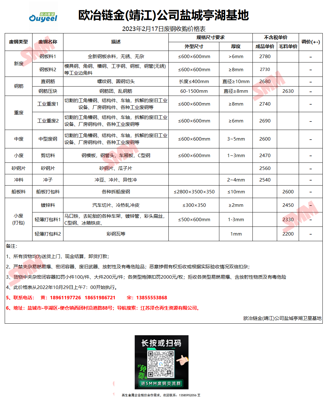 今日欧冶链金(靖江)盐城亭湖 废钢收购报价已更新,有货的朋友欢迎联系我们!