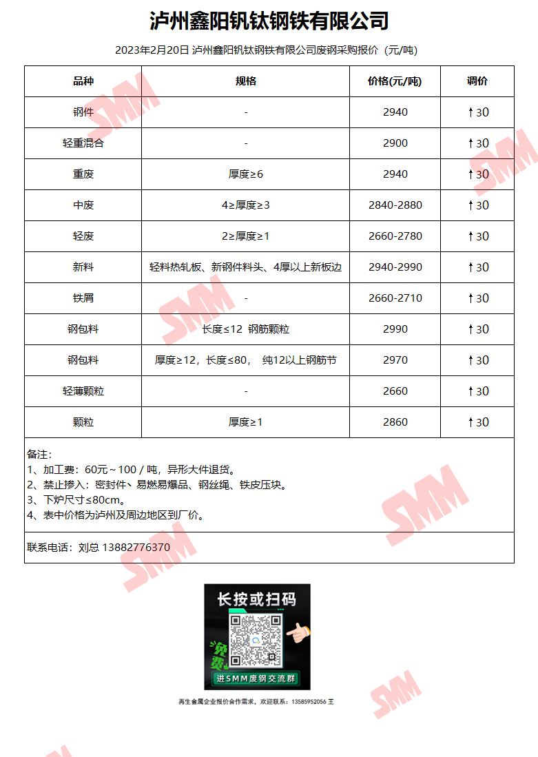 2月20日泸州鑫阳钒钛 废钢采购报价
