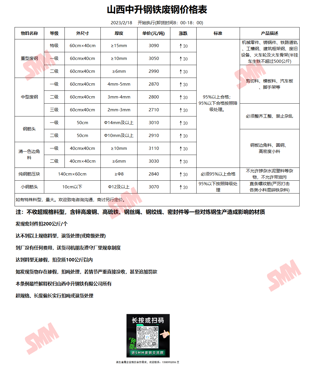 今日山西中升钢铁 废钢采购报价已更新,有货的朋友欢迎联系我们!