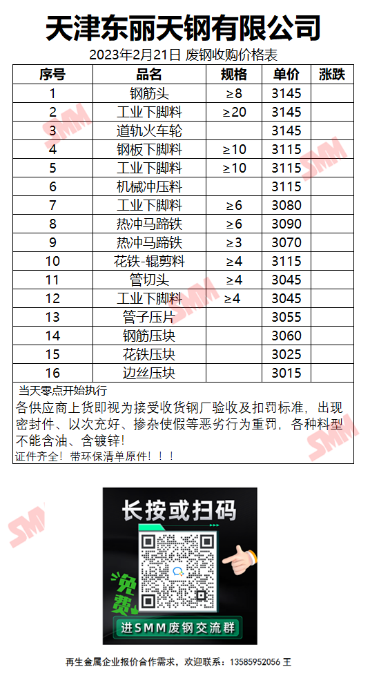 今日天津东丽天钢 废钢收购报价已更新,有货的朋友欢迎联系我们!