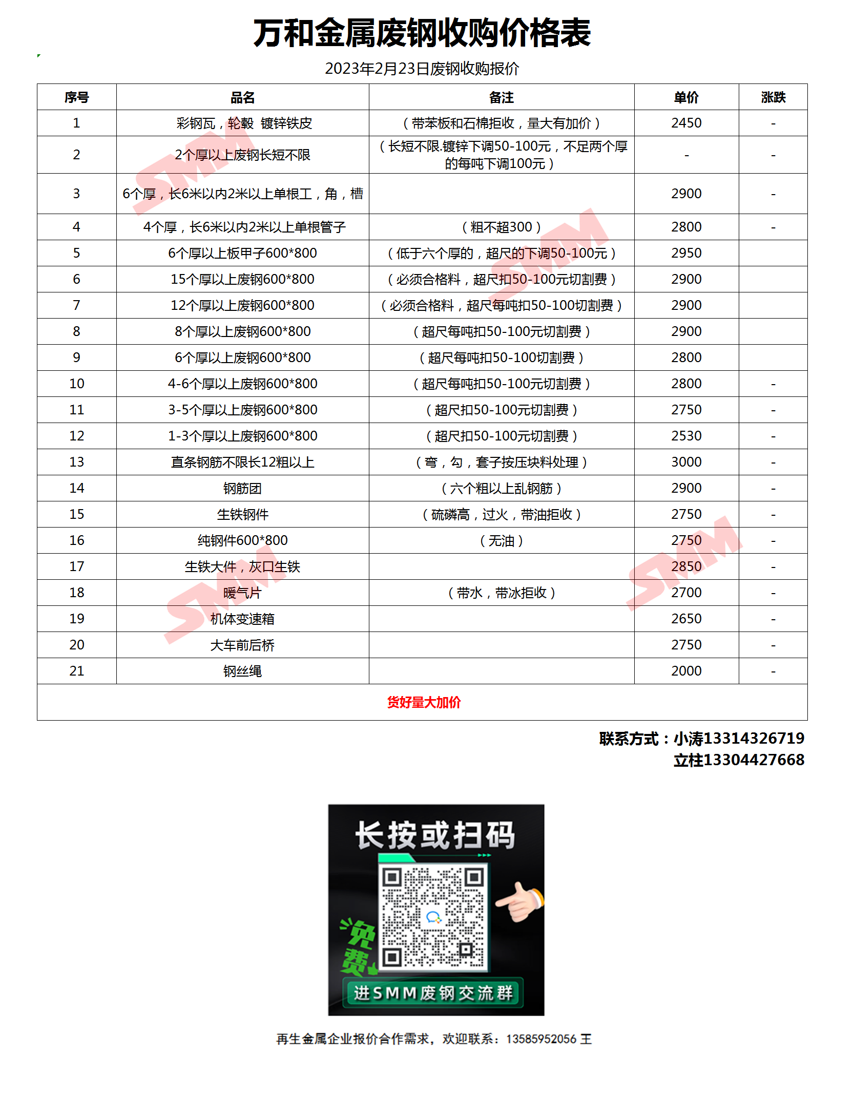 今日万和金属 废钢收购报价已更新,有货的朋友欢迎联系我们!