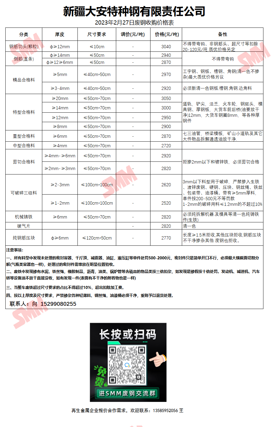 今日新疆大安钢铁 废钢收购报价已更新,有货的朋友欢迎联系我们!
