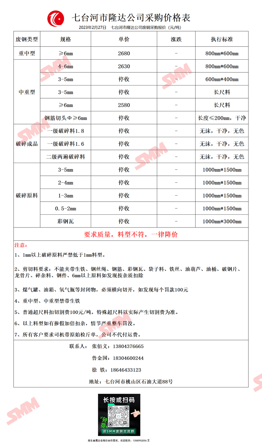 今日七台河市隆达 废钢采购报价已更新,有货的朋友欢迎联系我们!