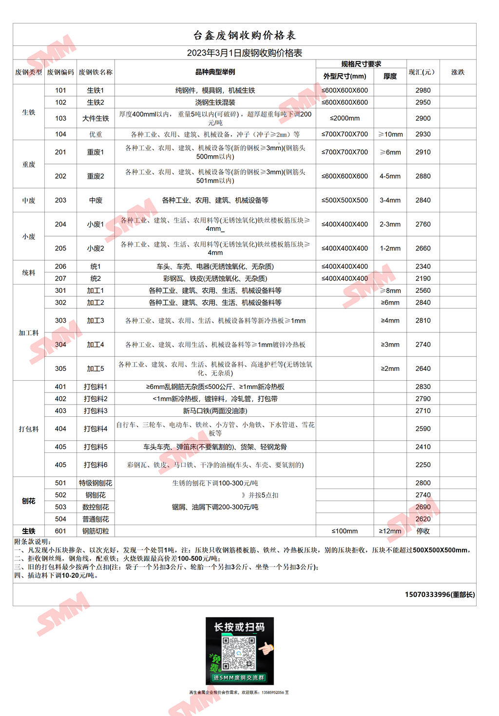 今日2023年2月24日 10时00分台鑫 废钢收购报价已更新,有货的朋友欢迎联系我们!