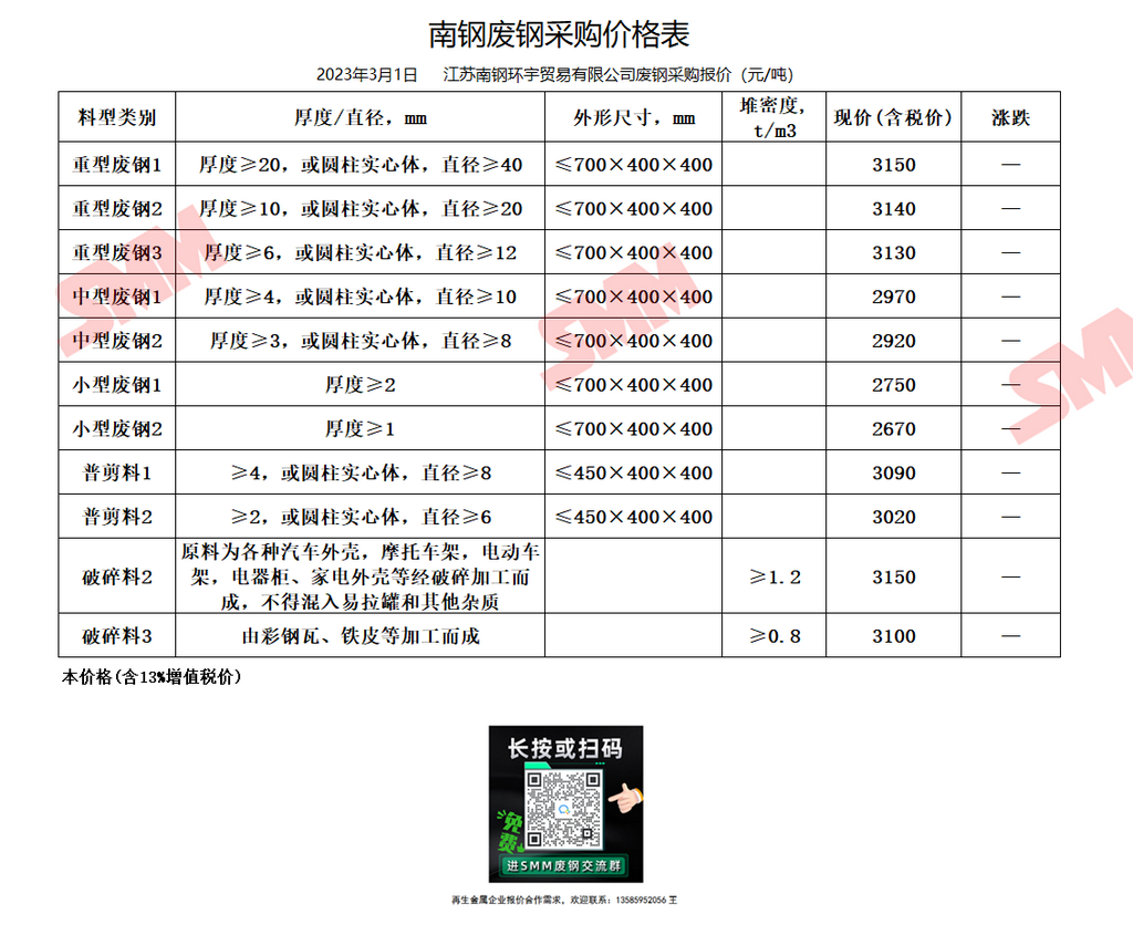 今日南京钢铁 废钢采购报价已更新,有货的朋友欢迎联系我们!