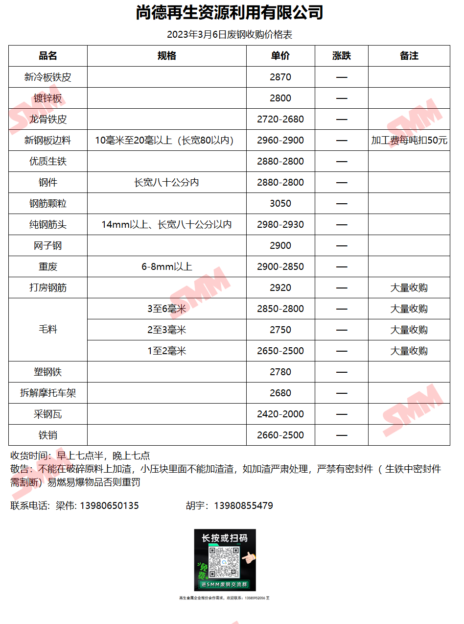今日 尚德再生资源 废钢收购报价已更新,有货的朋友欢迎联系我们!