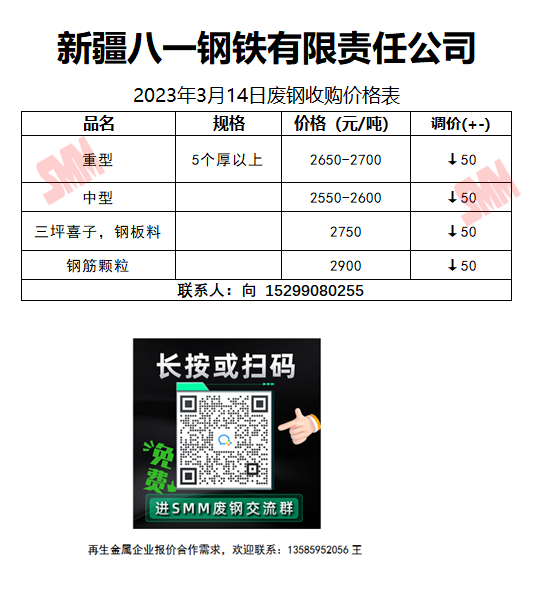 3月14日新疆八一钢铁 废钢收购报价