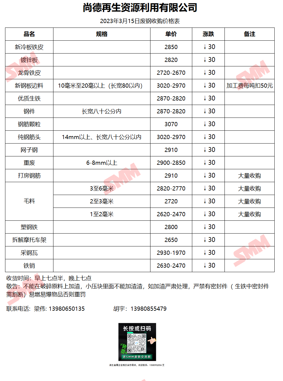今日 尚德再生资源 废钢收购报价已更新,有货的朋友欢迎联系我们!